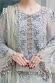 A timeless coffee-toned chiffon ensemble, exquisitely detailed with 3D floral hand embellishments and shimmering diamantes. The shirt features an embroidered organza neckline, delicately crafted chiffon front, and ghera patti finished with cotton satin applique for a regal touch. The embroidered chiffon sleeves add depth and elegance, while a dyed cotton satin undershirt and trouser ensure a graceful silhouette. Completing the look is a beautifully embroidered net dupatta, adorned with pearls and organza patti, making it a perfect choice for weddings, festive gatherings, and special occasions.