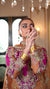 In the dimly lit room, Miraal emerges like a spectral bloom created with pure tissue in pale tangerine tone adorned with ethereal floral motifs paying homage to tales of ancient traditions. The ensemble celebrates old school elegance with each taanka laden carefully on the eclectic appliques creating a myriad of colors amalgamating convention with modernity. The turquoise green raw silk pants break the monotone of color and fabric exuding festivity and a mood of color and happiness.