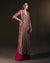 This stunning outfit in shades of deep pink and gold is a masterpiece of luxury and craftsmanship. It features exquisite hand embroidery with sequins, zari, and beadwork that shimmer beautifully under the light. The elegant neckline and half sleeves add a modern yet traditional appeal. Designed on a rich fabric, it drapes gracefully to enhance the silhouette. Perfect for wedding receptions or festive soirées, this ensemble captures regal charm with a contemporary touch. Its radiant hues and intricate detailing make it a true showstopper for any grand occasion.