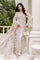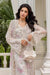 A graceful off-white embroidered chiffon suit, beautifully adorned with intricate details and delicate embellishments. The shirt features an embroidered organza neck patch with 3D floral handwork, pearl-accented dori embroidery on chiffon front and sleeves, and a finely embroidered organza ghera patti. Paired with a printed PK raw silk undershirt and matching raw silk trousers for a refined finish. Completing the look is a printed chiffon dupatta enhanced with embroidered organza patti, adding elegance and charm. Perfect for festive gatherings and special occasions.
