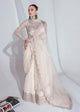 A stunning teal blue raw silk long shirt with tassels and beautiful embellishments in the front of the shirt and on the sleeves. The embellishments include delicate work of nakshi, dabka, sitara and cutdana in the hues of pink, orange, dark green, olive green, silver and iceblue. It comes along with a culotte pant which has pockets on the sides and a fine border of sequins and thread in pink and orange. The outfit consists of a flowy chatta patti organza dupatta in multicolor and gotta finishing