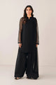 In the dimly lit room, Miraal emerges like a spectral bloom created with pure tissue in pale tangerine tone adorned with ethereal floral motifs paying homage to tales of ancient traditions. The ensemble celebrates old school elegance with each taanka laden carefully on the eclectic appliques creating a myriad of colors amalgamating convention with modernity. The turquoise green raw silk pants break the monotone of color and fabric exuding festivity and a mood of color and happiness.